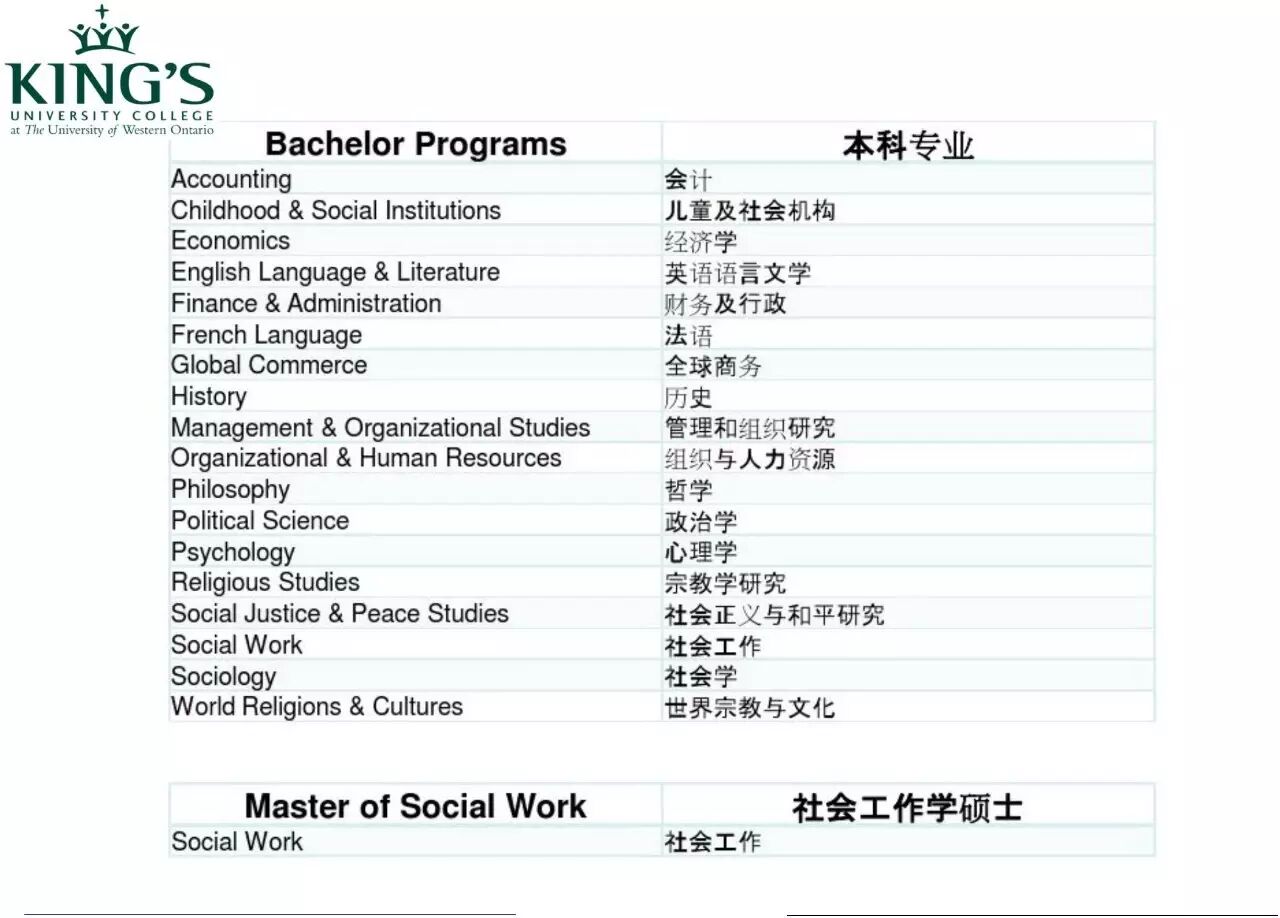 国王学院座落于加拿大安大略省西部的伦敦市,是西安大略大学附属学院。虽然学院的规模不是很大,但它拥有最优秀的师资力量,它的专业课程可与最好的大学媲美。国王学院还向学生提供良好的读书环境,具有特色的小型课堂使学生有更多的机会与导师交流、倾谈。国王学院同时对来自于不同背景、不同信仰的学生及来自于世界各地的国际留学生都表示热情的欢迎。