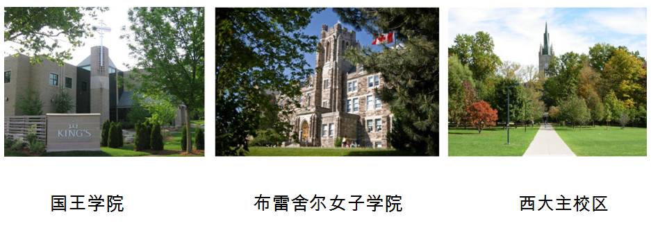 3个学院分别是:Brescia University College、Huron University College、 King’s University College;2个教学医院分别是:London Health Sciences Centre、St. Joseph’s Health Care London;3个附属研究所分别是:Robarts Research Institute、Lawson Health Research Institute、London Regional Cancer Center