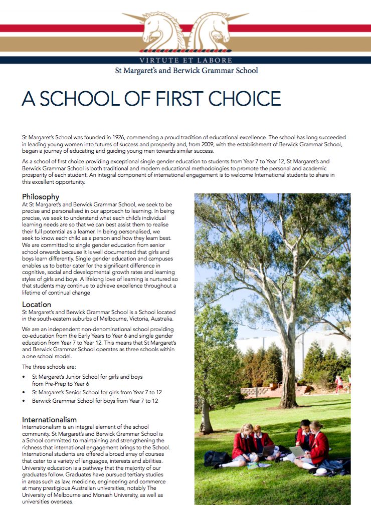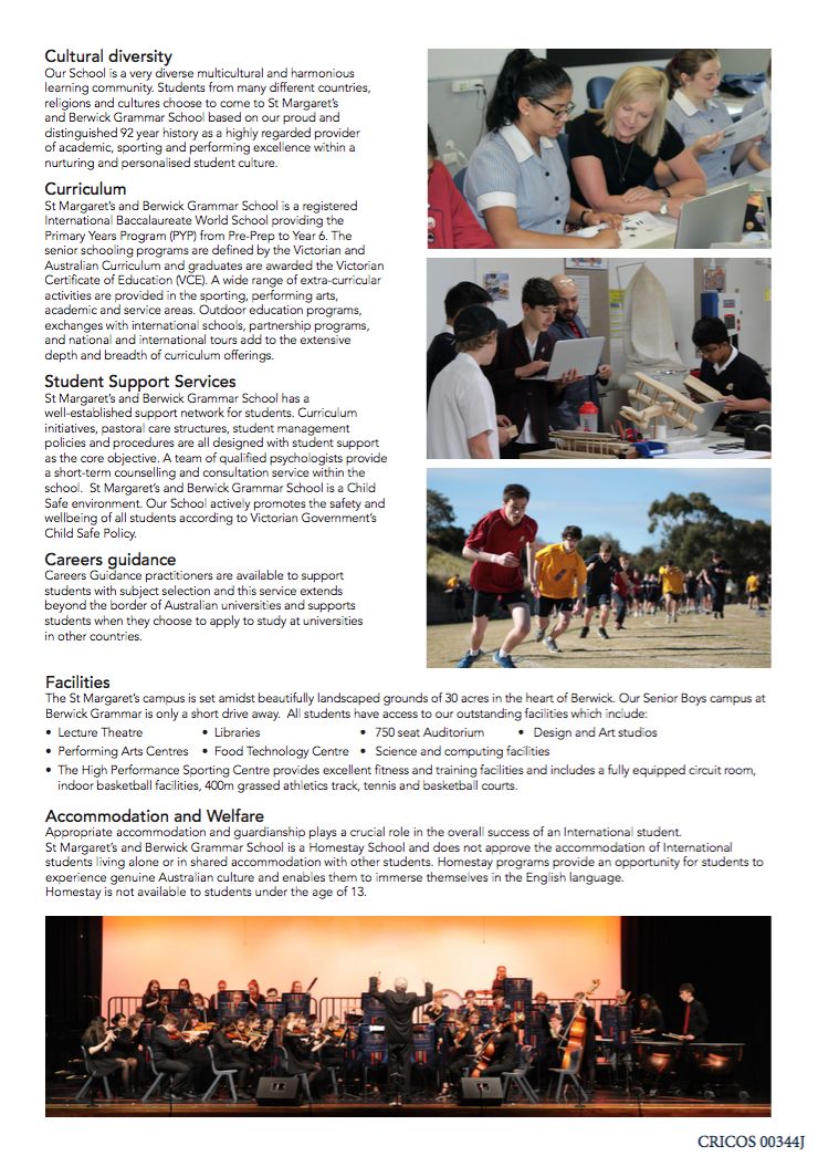 学校拥有92年的历史,吸引了世界各地不同文化背景的学生。大部分的毕业生都会在大学中,学习法律,医药,工程,商科等,进入澳洲优秀的大学,比如墨尔本大学或莫那什大学。