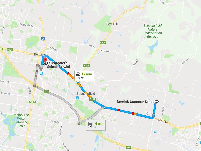 伯威克学校距离圣玛格丽特学校7.5公里。建于2009年,这个学校为男生所设计,拥有节能建筑。特别建立了一个设计和技术楼,视觉艺术中心,表演中心,并且开设了音乐,戏剧和室内体育课程。学校内有多样的户外娱乐设施,其中包括板球,网球,篮球,和一个超大的户外操场,为学生们举办各种丰富的体育活动,比如澳洲橄榄球,足球和板球等等。