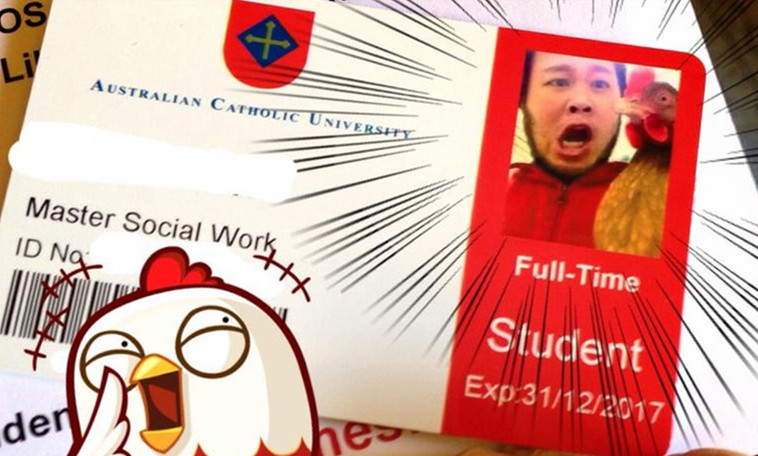 明知不正经的照片会被拒绝,何同学果然隔天就收到校方的通知。通知直指大头照不能有其他生物,“No Chickens! ”。当他亲自跑一趟学生事务中心补交照片时,却得知ACU各分校高层决定破例采用这张照片。事务中心主任还特地跑过来跟他握手:“谢谢你,我整整笑了两天!”