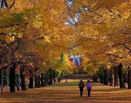 你可以体会漫步于学校,周围一片金黄的绝美自然景致。