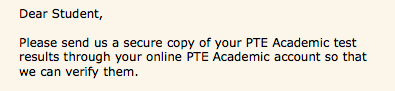 如果你和别的材料一起,寄出了自己的PTE成绩复印件,那它们便会将你的申请搁置,等待你从官网给它们发送成绩单,这样一来,无疑是耽搁了大家的申请进度!