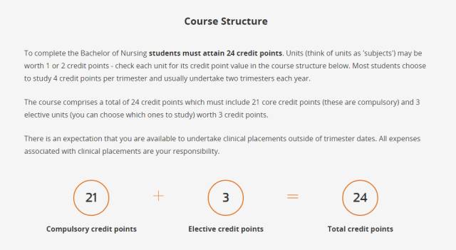护理专业的课程时长为3年,学生们积累够24学分之后可以顺利毕业,其中包括21学分的必修课程和3分的选修课程。一门课程的学分为1-2分不等。