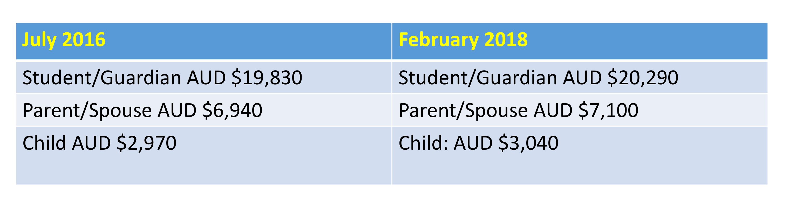 2016年7月,移民局规定的最低澳洲年生活成本为: