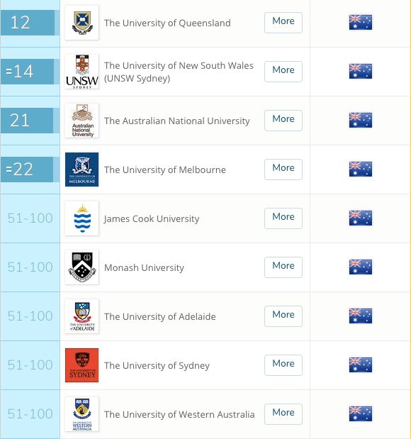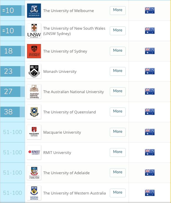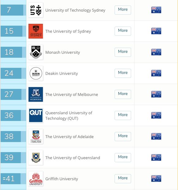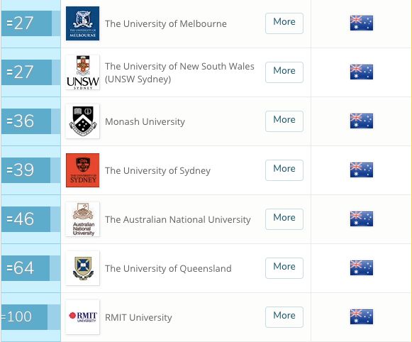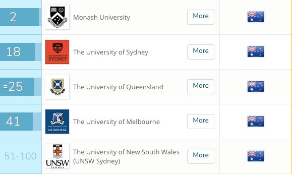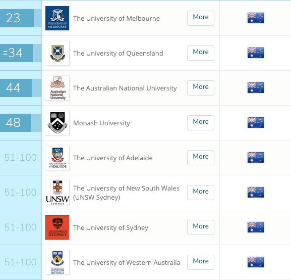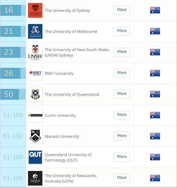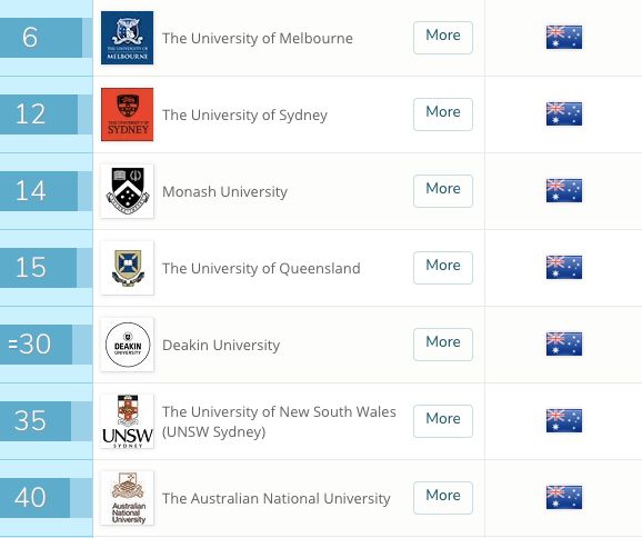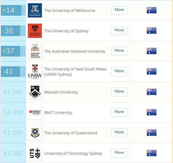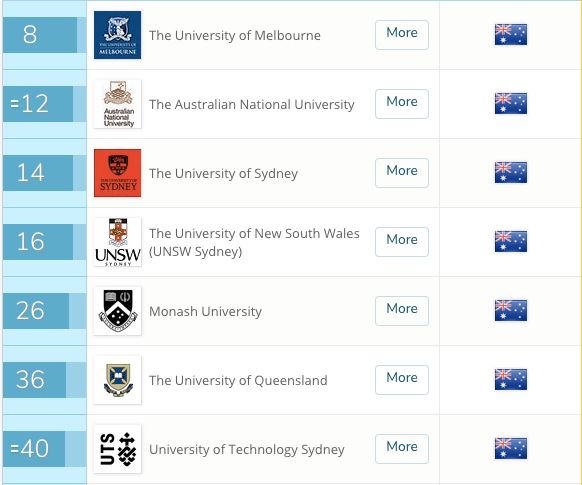 那么,澳大利亚在排名榜中是怎样的表现呢?同学们各自的高校和专业排名又是多少呢?现在就带着同学们来看看吧!