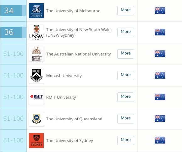 澳洲国立大学排名与2017年相比,排名跌出了世界TOP50。而墨尔本大学和新南威尔士大学仍保持着30-40的排名。