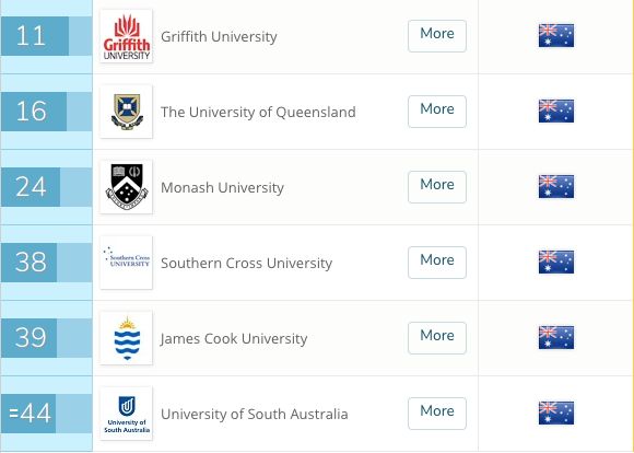 共有三所澳洲大学的酒店管理专业排进了世界TOP30。格里菲斯大学位列世界第11名,昆士兰大学和蒙纳士大学紧随其后,世界排名分别是16和24。