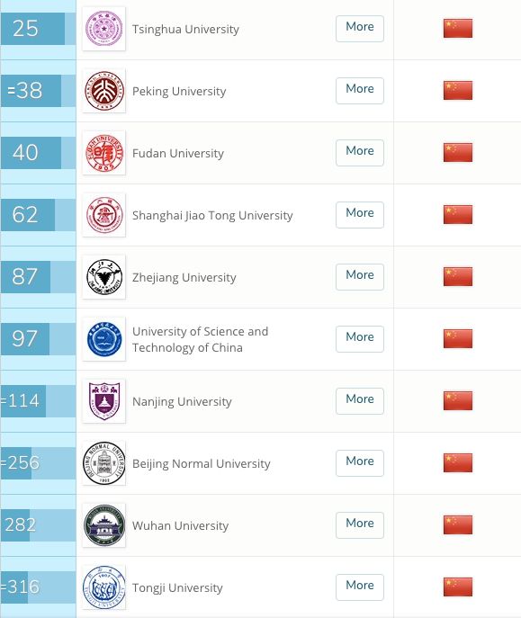 澳洲各大热门专业排名就先介绍到这里啦!Last but not least~ 我们还贴心的为同学们奉上了中国知名高校在这次2018QS世界大学榜上的排名哦!