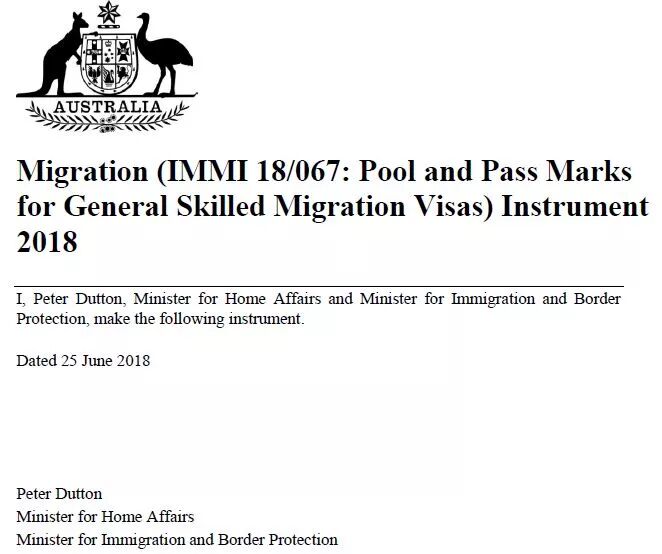 重磅新闻!今天,收到澳洲移民局的官方邮件通知,根据内务部长Petter Dutton最新签署的文件显示,澳洲移民EOI的获邀入门分数上涨至65分!!!