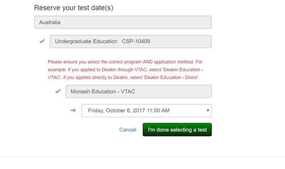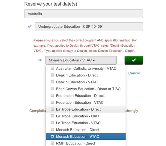 请选择考生要申请的大学,比如Monash Education (注意在两个Monash 的选项中,选择Monash Education-VTAC)