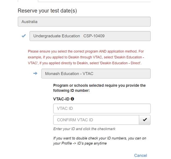 请填写VCE考生的VTAC ID(注意不是VCE Student Number)