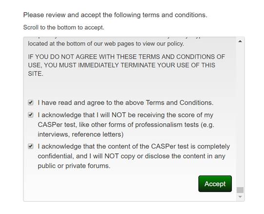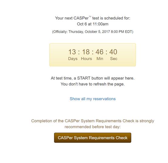 最后请注意,考生注册后,一定要在自己将来在考试中使用的电脑上完成Completion of the CASPer Requirements Check, 用来检测电脑的浏览器、网速、声效是否满足考试的要求。另外,考生通过走完整个check,也会对考生的内容、注意事项等有所了解。