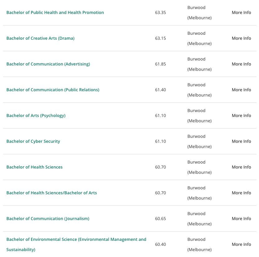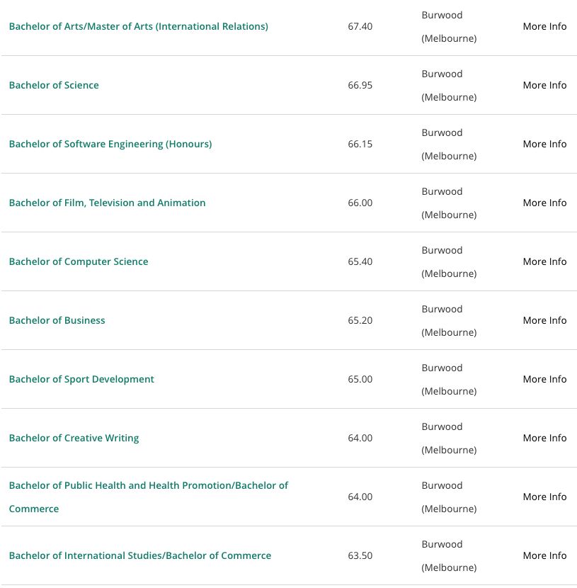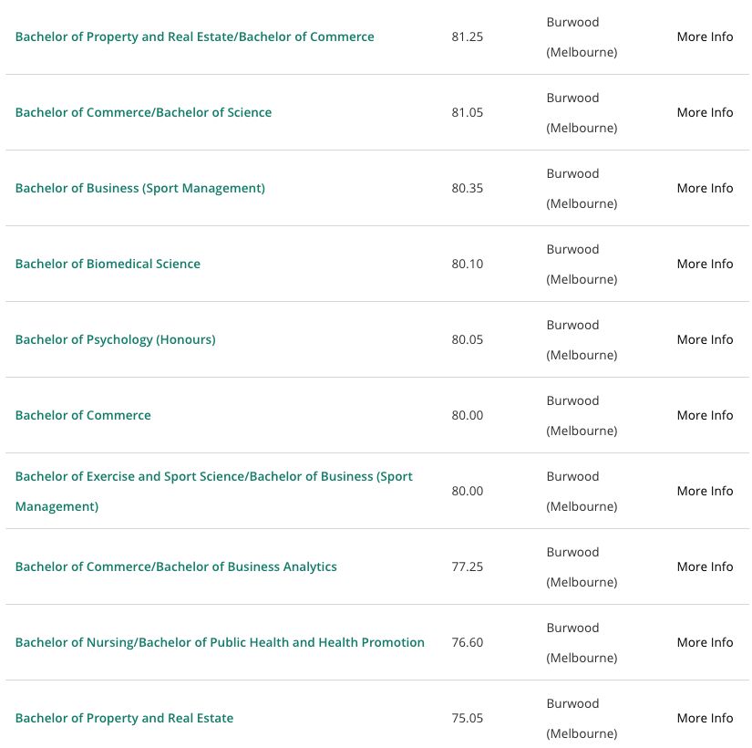 小贴士:Deakin的ATAR目前很多还没有公布,小伙伴们可以点击以下传送门密切关注