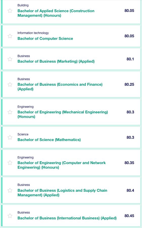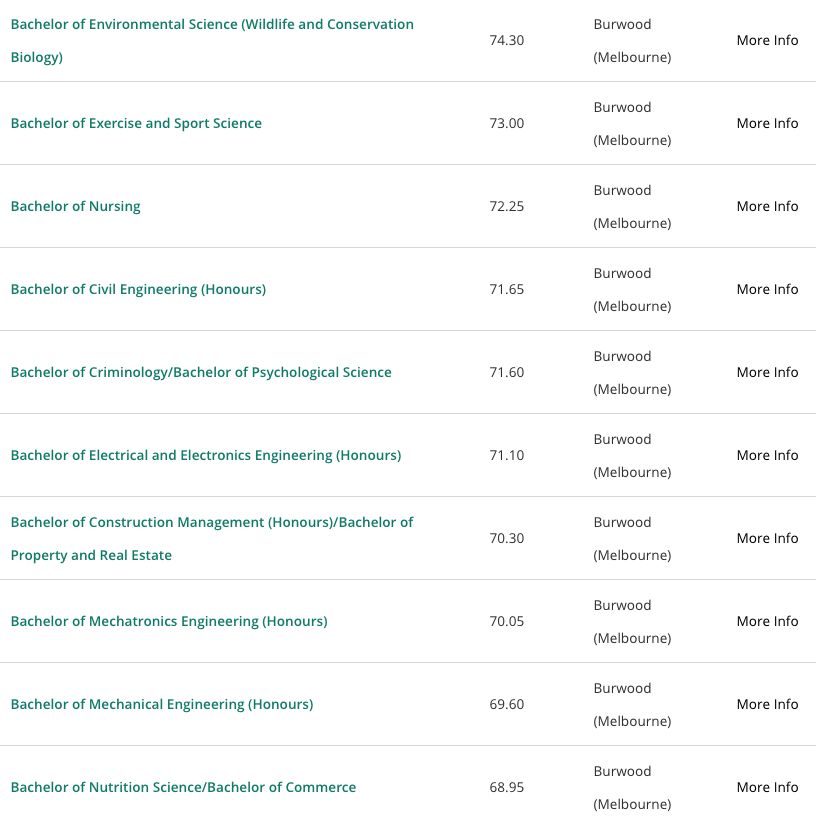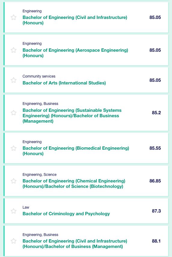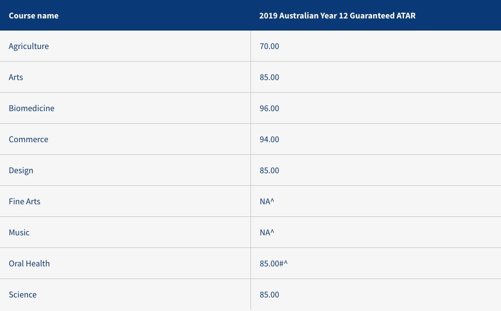 查完了分接下来最重要的就是看录取分数线下面,让我们来一起揭开 2019 维州各大学国际学生专业 ATAR分数线的神秘面纱